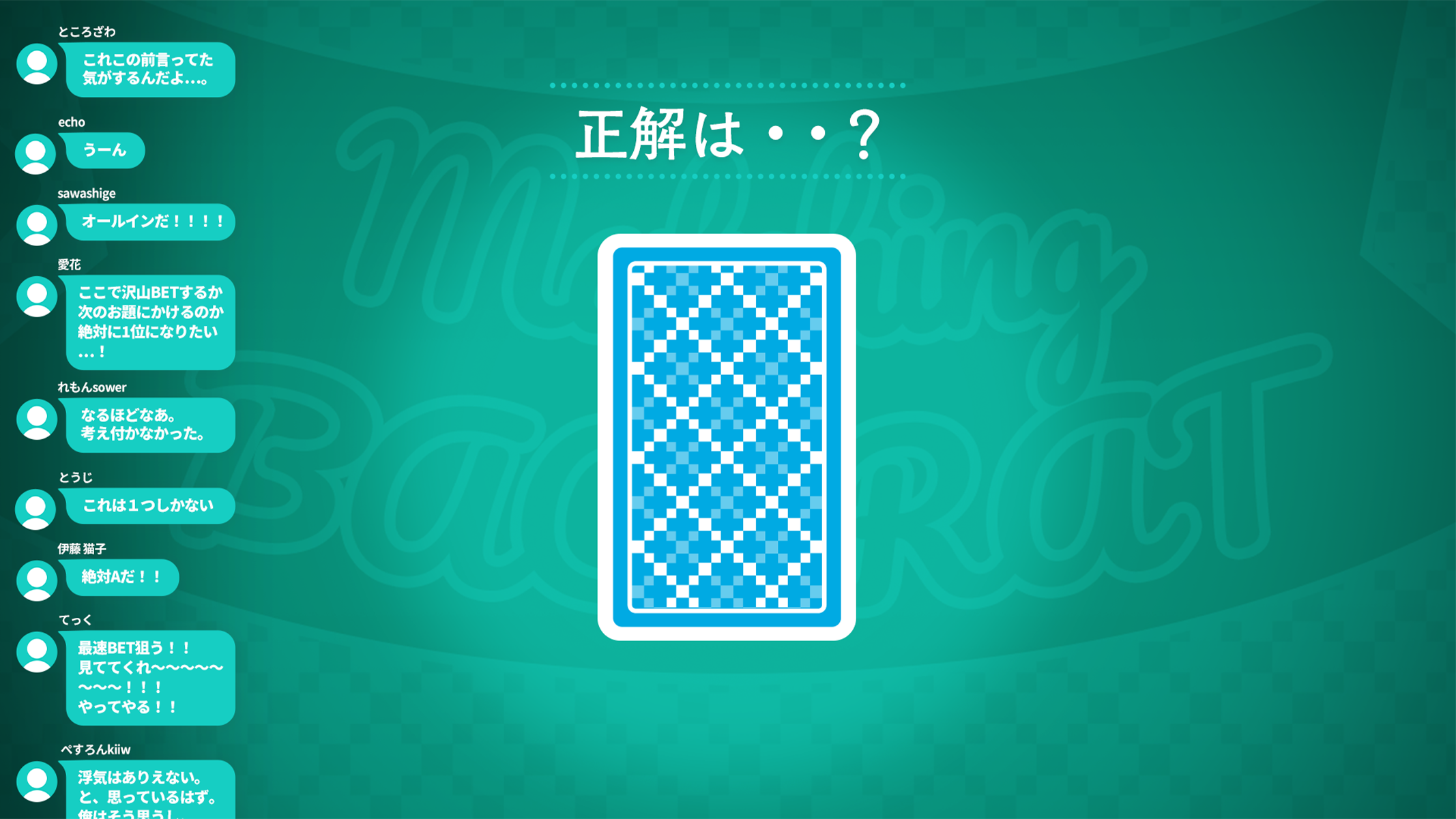 「バカラ」らしく絞りアニメーションで配信者の回答が公開されます。