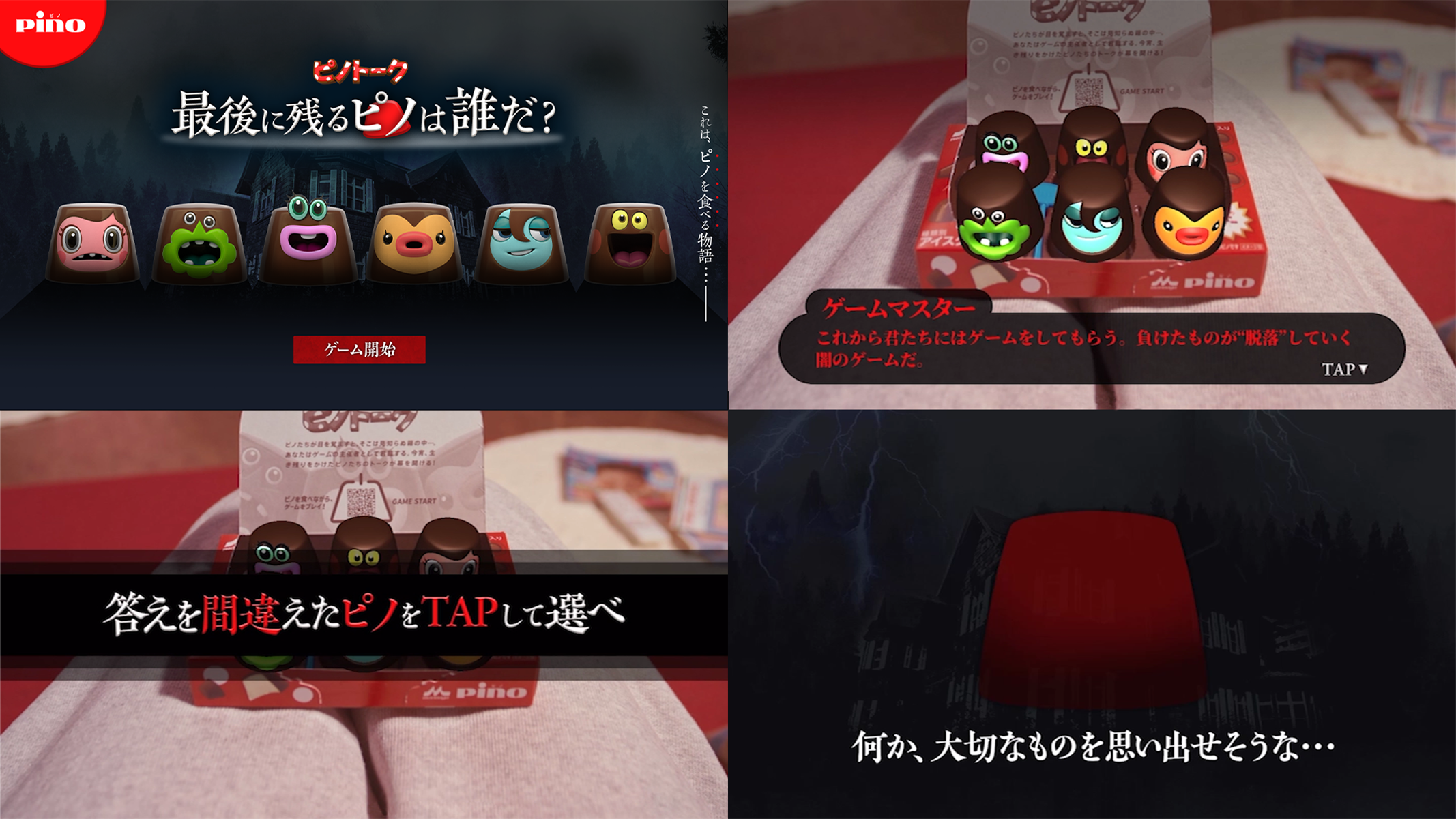 あなたはゲームの主催者として君臨する。今宵、生き残りをかけたピノたちのトークが幕を開ける!