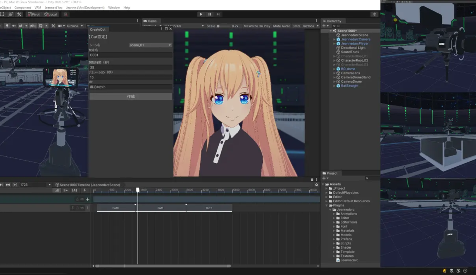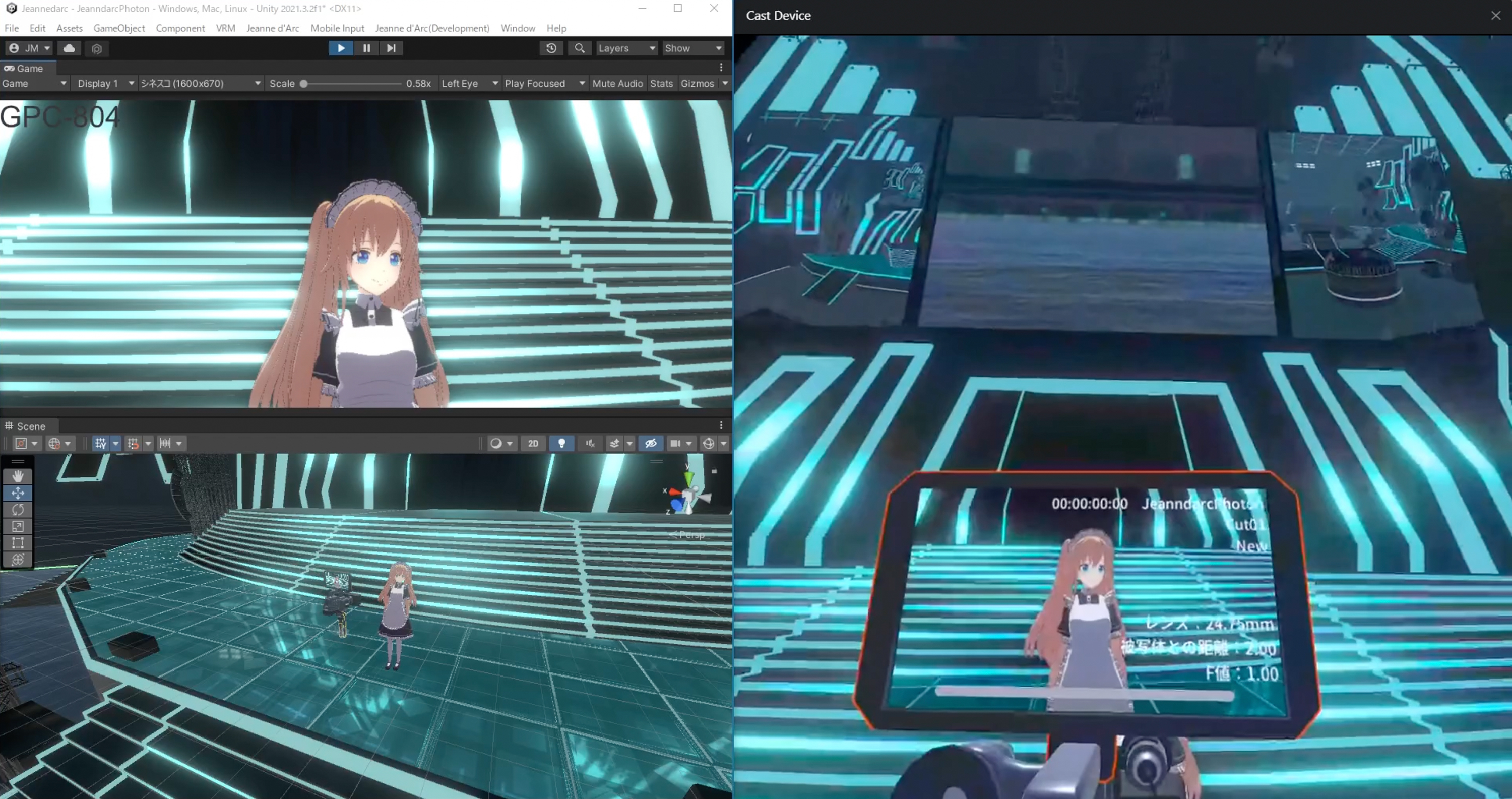 「ジャンヌ・ダルク」は、VRデバイスを使って仮想(バーチャル)空間上で、現実のように撮影ができるバーチャルカメラ技術です。現実だけではなく、仮想空間内の人物や物体の動きをデジタルデータに記録できるモーションキャプチャによって、カメラ情報と撮影動画を保存、活用が可能に。映像制作やライブ配信などクリエイティブな創造的活動を支援します。