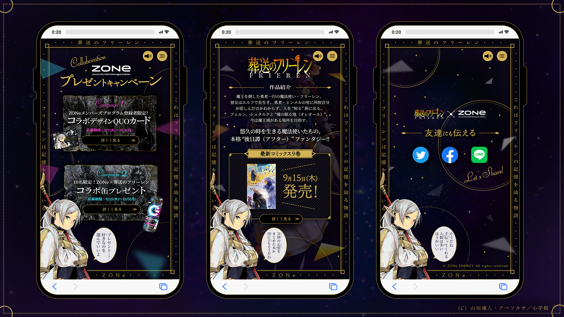 週刊少年サンデーで連載中のマンガ『葬送のフリーレン』と、エナジードリンクZONeのコラボレーションキャンペーン、「覚醒のメロディー」を企画・制作しました。