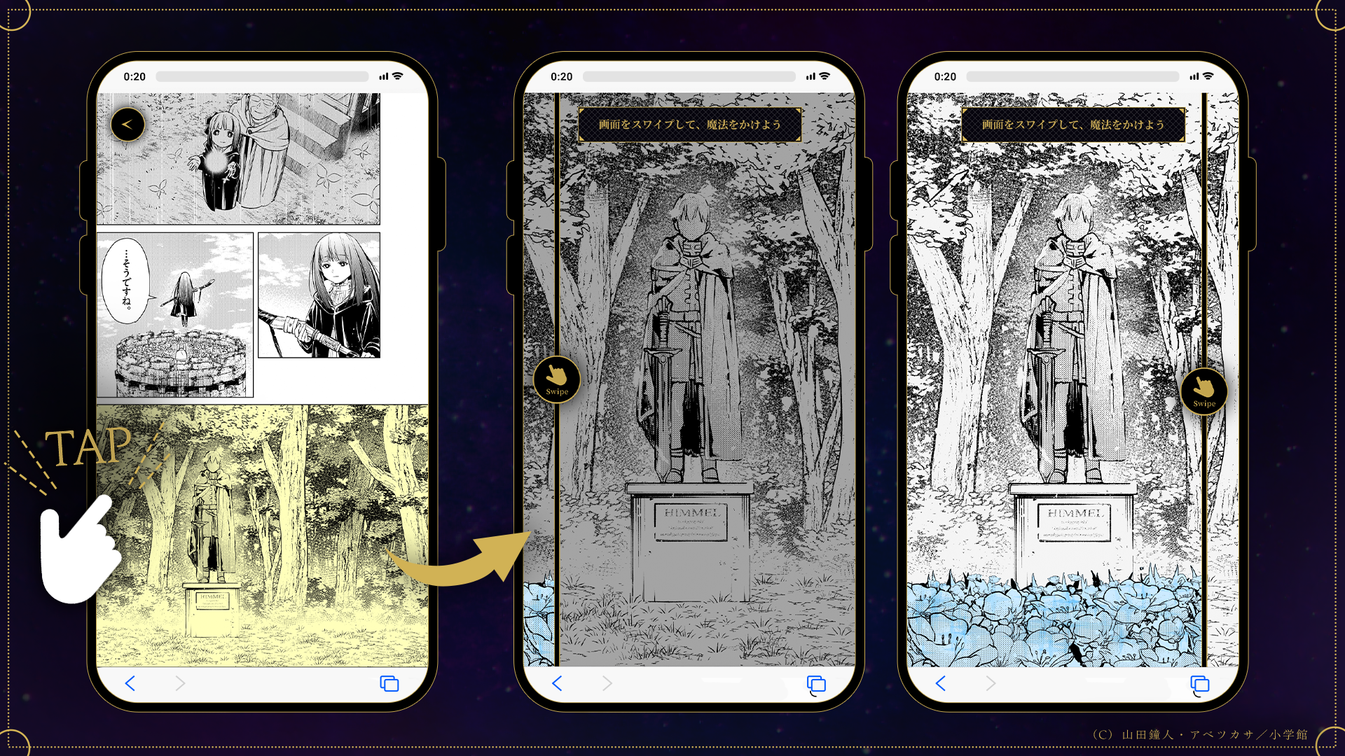 特設Webサイトでは、『葬送のフリーレン』の1話から5話をここだけの特別な演出と音楽で、世界観に"没入"して読むことができます。